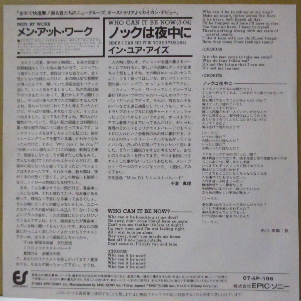 オーストリア出身のニューウェーブ・バンド「メン・アット・ワーク」の'82年シングル。'81年1stアルバム「Business As Usual」からカットの彼らの代表曲で、B面曲も同作から。