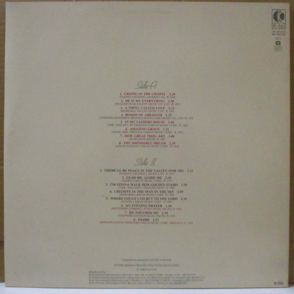 日米以外の各国で発売、一部では「Inspirations」のタイトルで発表された、エルヴィスの「ゴスペル」トラック編集コンピレーション。「Crying In The Chapel」「There'll Be Peace In The Valley 」他、全16曲。