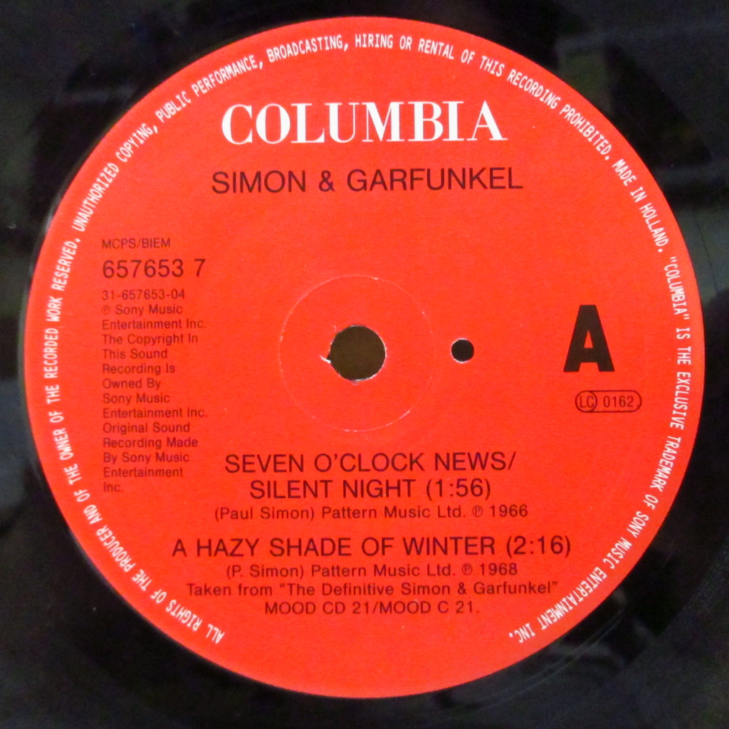 '66年サードアルバム「パセリ・セージ・ローズマリー〜」収録クリスマス古典名曲のカヴァと、同年発表名曲をカップリング。両面に同2曲を順番を入れ替えて収録。'91年ベスト「The Definitive Simon & Garfunkel」からのシングルカット。
