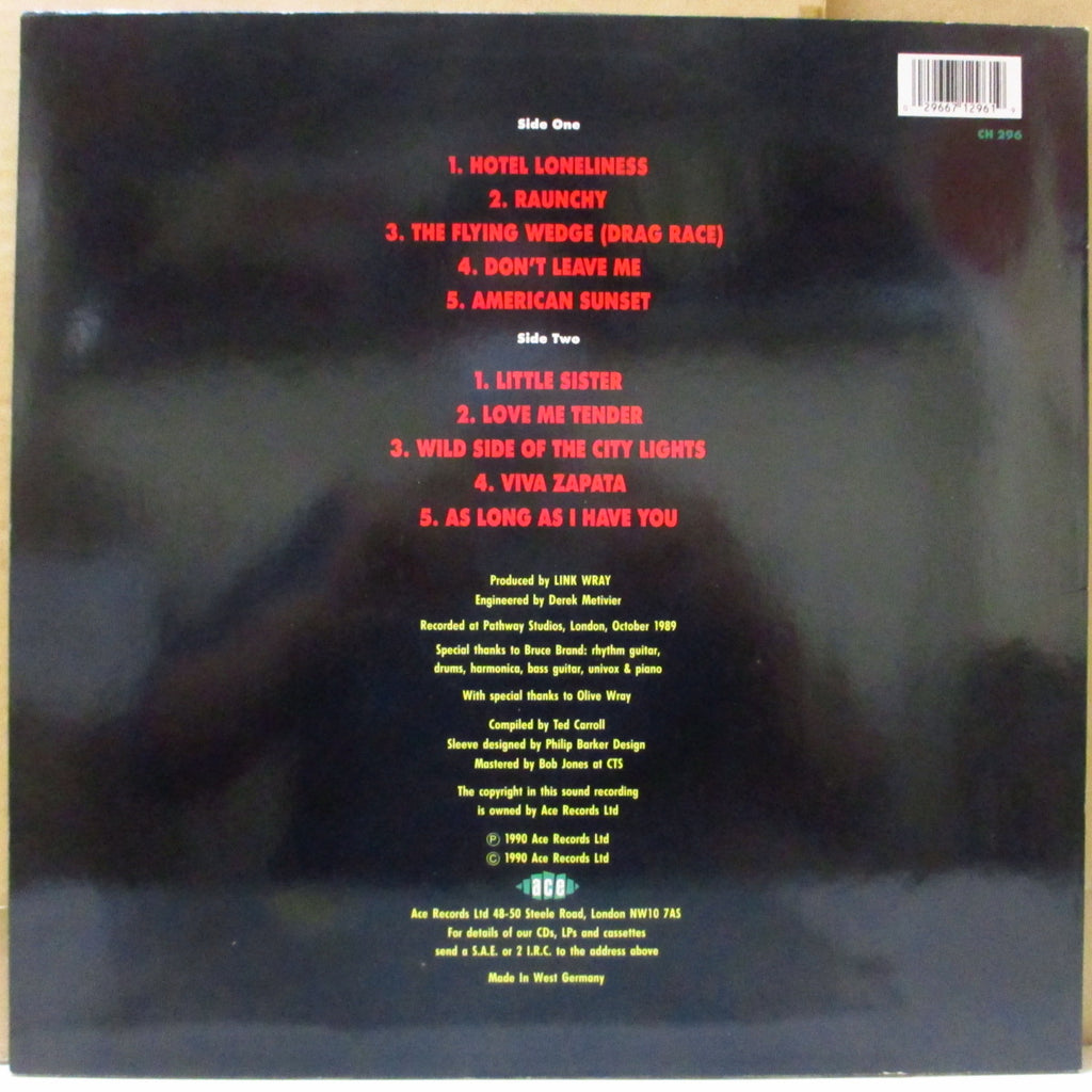 不良度100%猛毒ギターをぶち鳴らす奇跡のロッカー「リンク・レイ」の'90年英Ace社での復活ロンドン・スタジオ録音第3弾アルバム!61歳時ながらワイルドさ健在!哀愁怪インスト表題曲や「Hotel Loneliness」、爆インスト「The Flying Wedge'」、「エルビス/リトルシスター」の唄入りカバー他、全10曲。当時売れてないので激入手困難(笑)