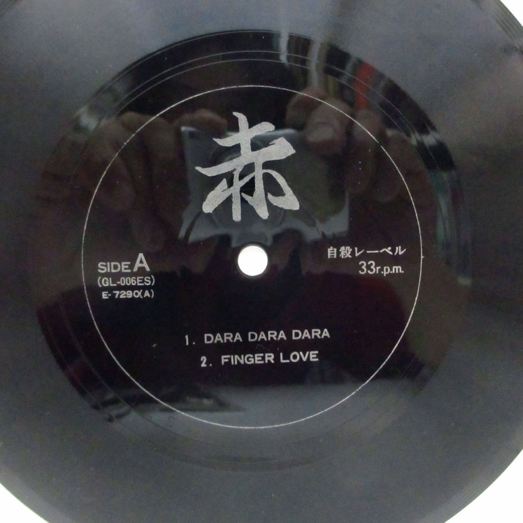 奇形児、マスターベーションと共にバンク第2世代を代表する「赤(アカ)」が'85年にリリースした唯一ソノシート。東京に活動ベースを移した自殺レーベルから。Dara Dara Dara / Finger Love / 偽想愛/ まらない 収録。ベースは後に東京ヤンキースに加入。