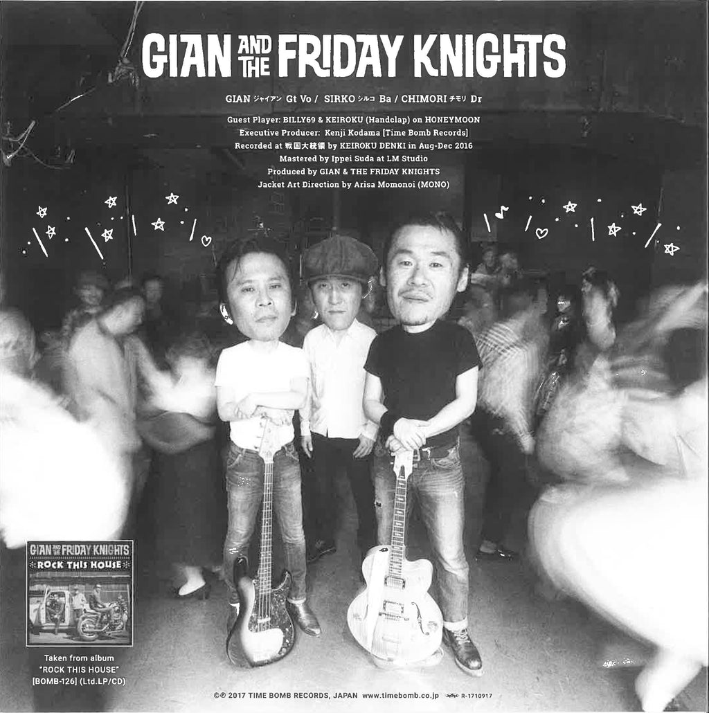 2005年度タイムボムのドラフト1位でアルバムリリースを果たした、大阪秘境ミナミに埋没していた地獄ロッキンブルース経由の極上パーティ・パンキー・パブロック・トリオ「ザ・コンロッズ」の問題児ジャイアンが12年ぶりに復活結成の「ジャイアン&ザ・フライデーナイツ」!