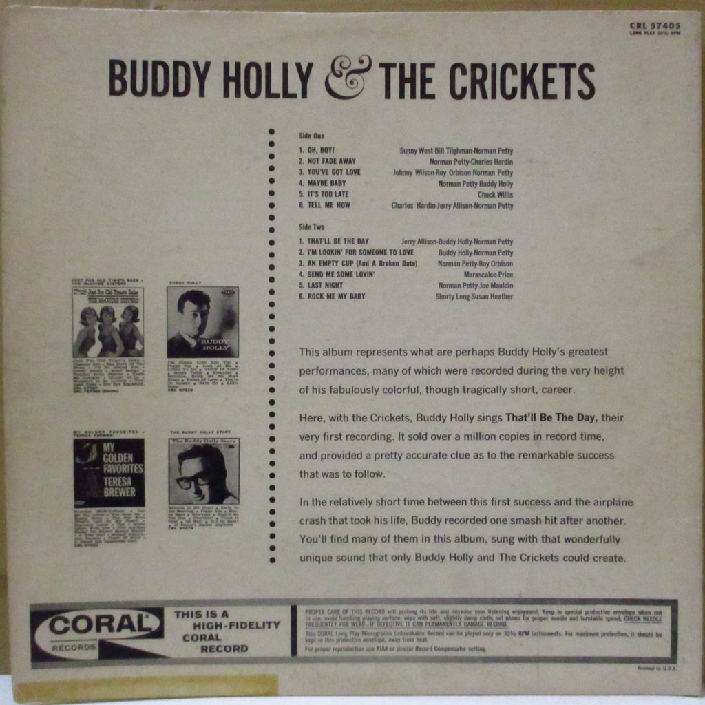 「クリケッツ」名義'57年デビュー・アルバム「The Chirping Crickets」の、'59年事故死後に「バディ・ホリー」の冠を付けた、同内容の'62年別ジャケ、別タイトルの再発。