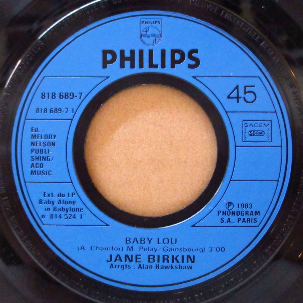フレンチPOP界重鎮(英国出身)「ジェーン・バーキン」の'83年37歳時発表、両面共に恋人巨匠セルジュ・ゲンズブール作で、A面「Baby Lou 」はアダルト哀愁アーバン・ディスコ調ポップ名曲。逆面の極上哀愁美メロ・ポップバラッドにもメロメロです。