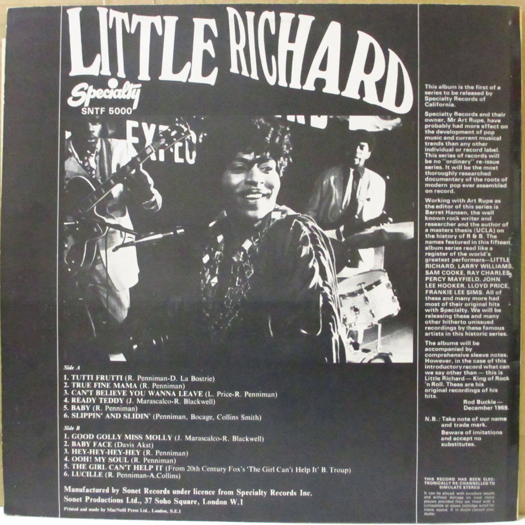 永遠不滅のR&Rシャウター「リトル・リチャード」の、'50年代スペシャルティ社黄金期のベスト第一弾!「トッティ・フルッティ」「ルシール」「レディ・テディ」他、全12曲!当時、UK、フランス、イタリア、北欧、スペインのみで発売された珍盤。