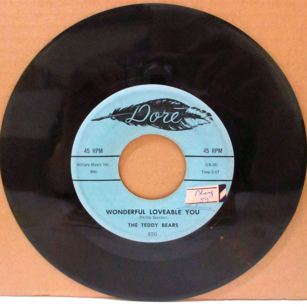 御存知フィル・スペクターが在籍した女性リード・ヴォーカルのコーラス・トリオ「ザ・テディ・ベアーズ」、 ’58年全米大ヒット名曲バラッド「会った途端に一目惚れ」に続く翌年セカンド・フォロー作となる、フィル自作の哀愁ティーン・バラッド。逆面はロカビリー調のインスト・ジャイバー。ヒットしてないのでかなり入手困難な一枚。