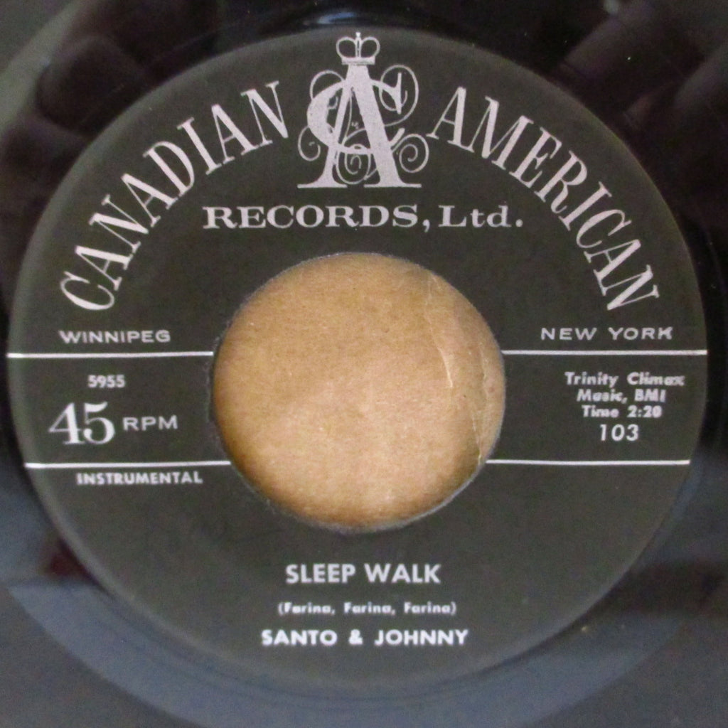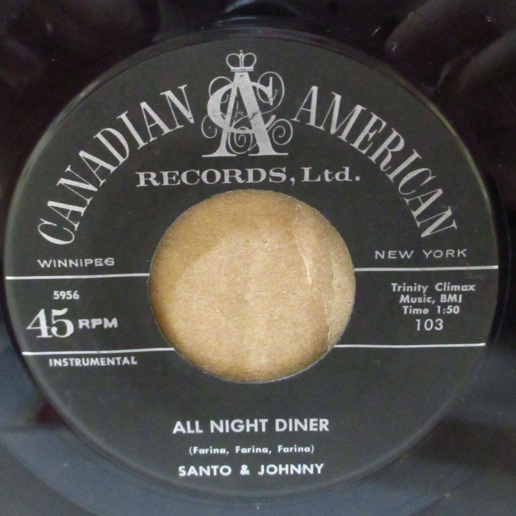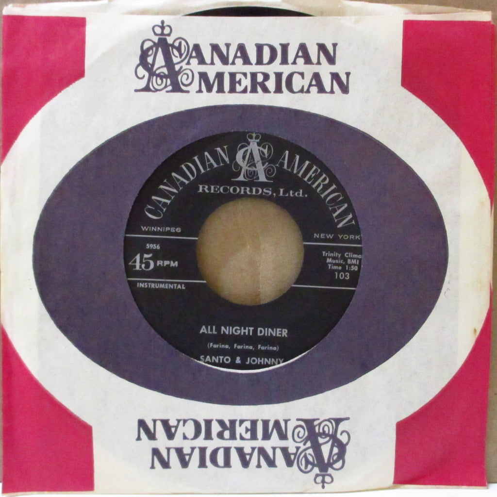 ニューヨークのスティール・ギター・デュオ「サント&ジョニー」、’59年デビュー作にして全米チャート1位の大ヒット(ゴールドディスク)となった、永遠不滅の哀愁美メロ・スロウ・インスト大名曲(R.I.P.宮下静夫先生/フォーエバー・レコード)!B面の、クールなアップテンポ・ロックンロール・インストも最高!