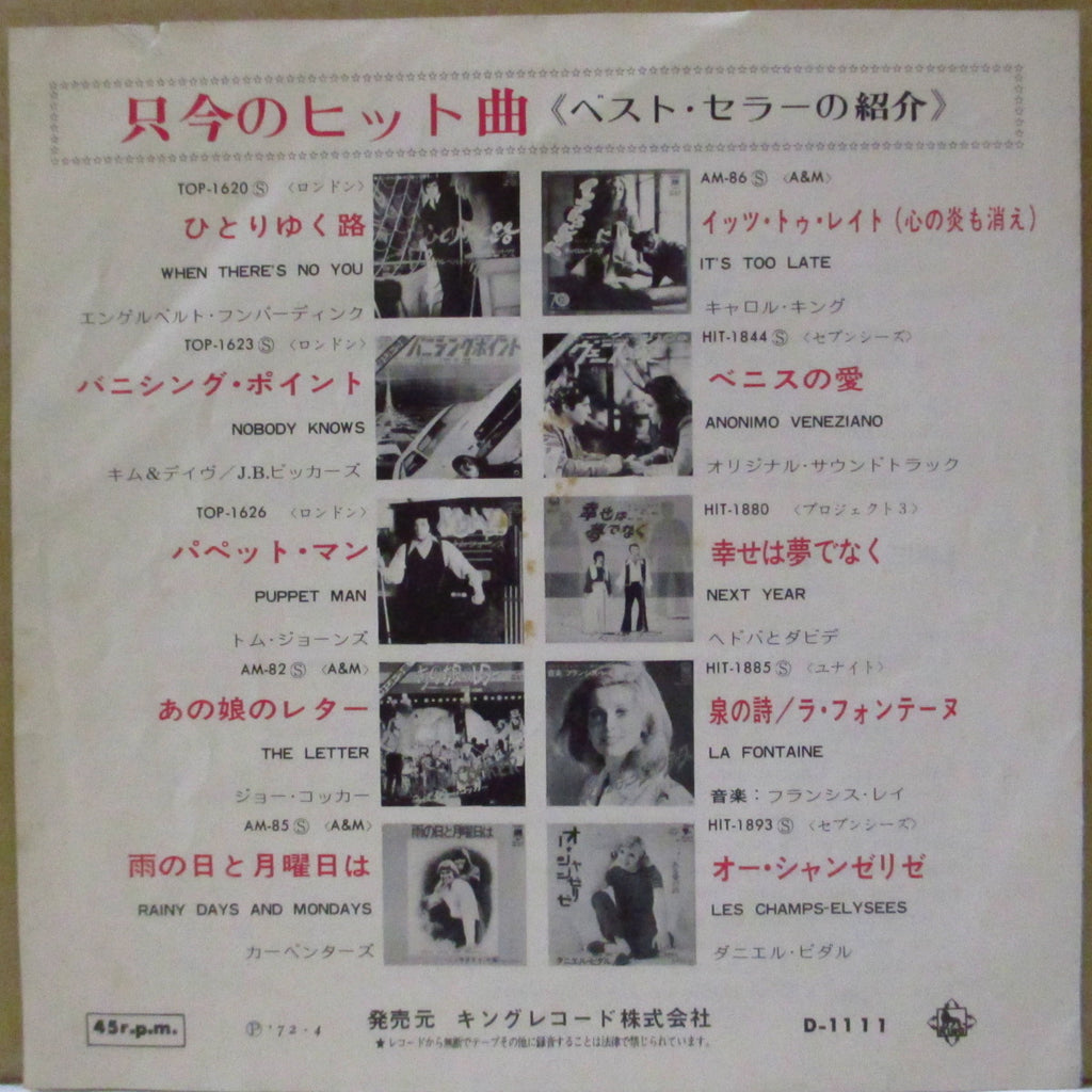 ■貴重'72年日本再発7インチ(日本初回はDeram D-1012で赤ジャケ)。