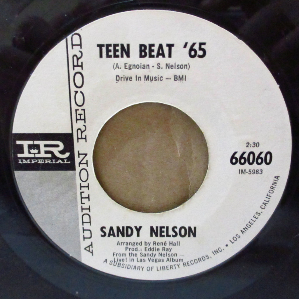 カリフォルニア天才セッション・ドラマー「サンディ・ネルソン」、'64年全米44位のリバイバル・ヒットとなった、(映画「ラブレス」挿入)'59年ソロ・デビュー大ヒット「Teen Beat」の(擬似歓声入り)アップテンポ・リメイク・セルフ・カヴァ!B面の、フルートが印象的な、ソフト調ミッドテンポ・美メロ・ポップインストも素敵!
