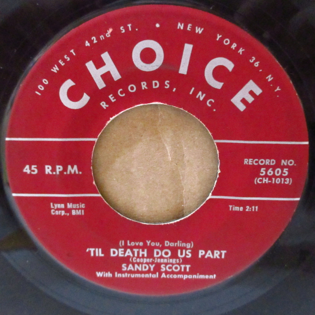 米マイナー・カントリー・ロッカー「サンディ・スコット」の'57年デビュー作で、「Hillbilly Hop Vol.3」「Dateless Night」他コンピ収録で知られる、パンチの効いたアップテンポ・ボッパーズ・ジャイバー!B面の哀愁恋唄ロッカ・バラッドも素敵!