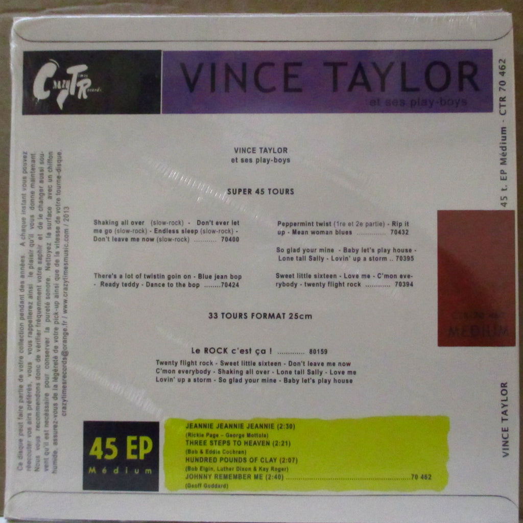 不良ルックスも最高な英国イケメン・ロッカー「ヴィンス・テイラー」、'60年代初頭フランスで活躍期バークレイ社での未発表セッションカバー4曲を当時のEP風のジャケで再現した珍盤。