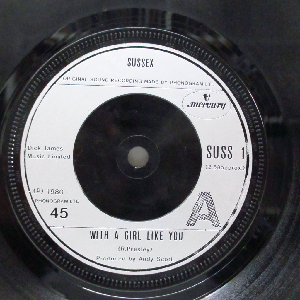 (UK/Mercury SUSS 1 /'80 Orig.Oval Logo Side Silver Plastic Label Flet Centre 7"+PS) マーキークラブからデビューした英国のパワーポップバンド、「サセックス」'80年のセカンドシングルでトロッグス '66年名曲のカバー。プロデュースはスウィートのアンディー・スコット。B面は唯一アルバム未収録。