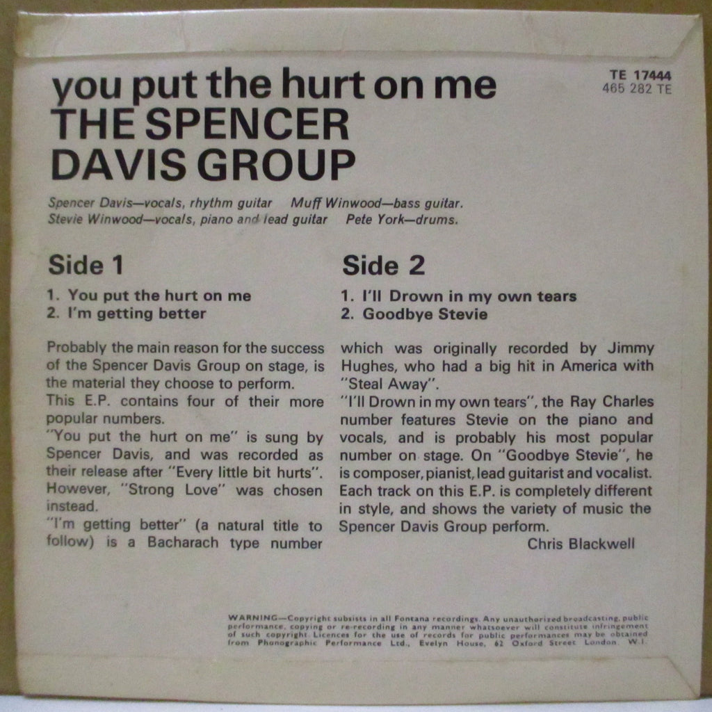 英国モッズ界大御所「スペンサー・デイヴィス・グループ」の'65年4曲入りEP!