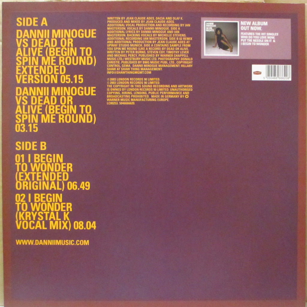 カイリー・ミノーグの実妹でオーストラリアを拠点に活動するシンガー「ダニー・ミノーグ」人気曲「I Begin To Wonder」とピート・バーンズ率いるニューウェーブ・グループ「デッド・オア・アライヴ」の代表曲「You Spin Me Round (Like A Record)」のマッシュアップ・シングル。同曲2バージョン+ダニーの原曲2バージョンを収録した4曲入り。