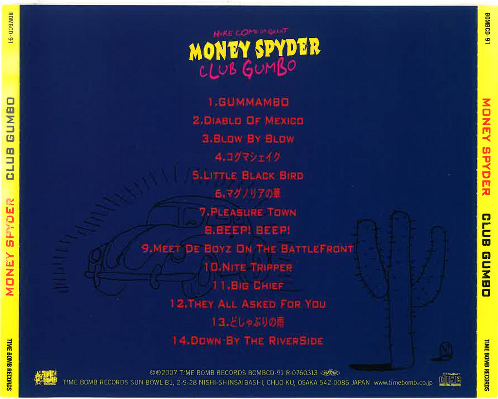 1991年の結成以来、数々のシングル、ビデオ、CDアルバムの発表を続け、大阪名物ガレージ系イベント「ハウスロッキン」の主催をしていた事で有名な「マネー・スパイダー」の、'07年セカンドアルバム。純粋なダンスミュージックを炸裂させ、ニューオリンズへ向かって進むロッキン・ガンボ・マスター!MITCHをはじめ大阪の大物アーティストも参加して出来上がったCLUB GUMBOで靴の底が溶ける程ロッキン・ブギウギフルーな全14曲!