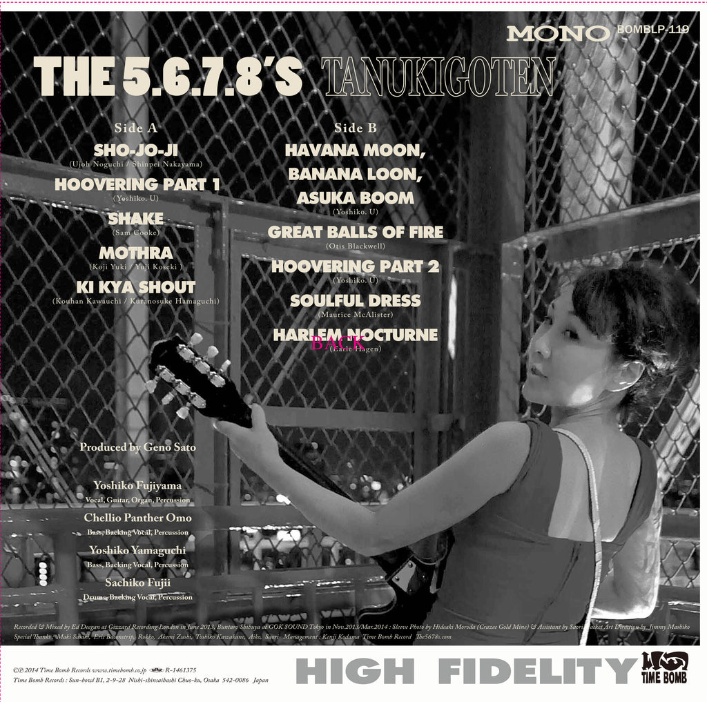 世界的規模で人気な、東京ロッキン・ガレージ・ガール・トリオ THE 5.6.7.8’Sの、ロンドンでのモノラル録音+東京でのジーノ佐藤氏(The HAIR~THE GENO)プロデュース・トラックの合体濃厚アルバム(2014年Xマス発表)!先行シングル「モスラの歌」のガレージSKAカヴァ、ジャック・ホワイト(ホワイト・ストライブス)プロデュース「SHO-JO-JI」の新バージョン、サム・クック名曲「SHAKE」、R&Rクラシック「火の玉ロック」の日本語爆裂バージョン等、独自絶妙アレンジ・カヴァ・センスには圧巻の全10曲。