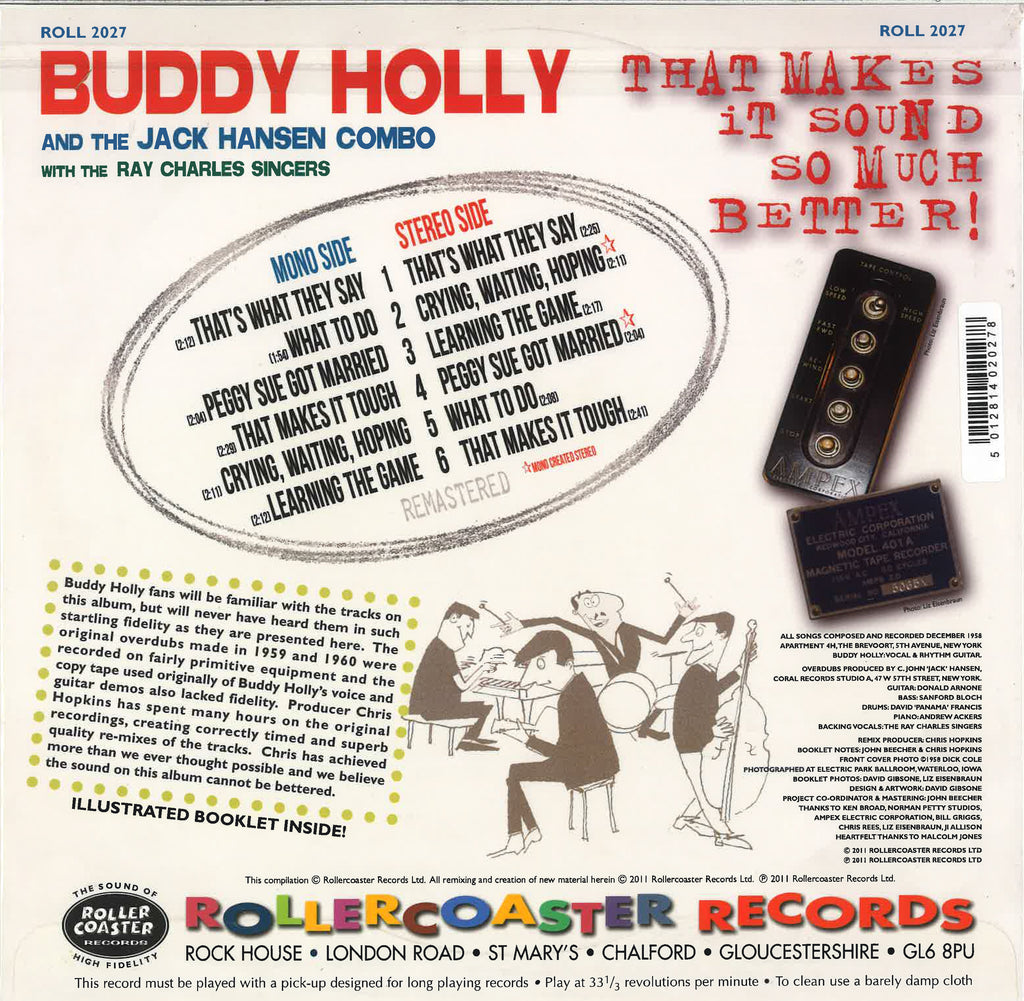 「ペギー・スー・ガッタ・マリード」「ワット・トゥ・ドゥ」「クライング、ウェイティング、ホーピング」、「ブラックキャッツ/Summer Rain Love」の元ネタ原曲「That's What They Say」などお馴染み名曲他の生々しいバージョンが全12曲!